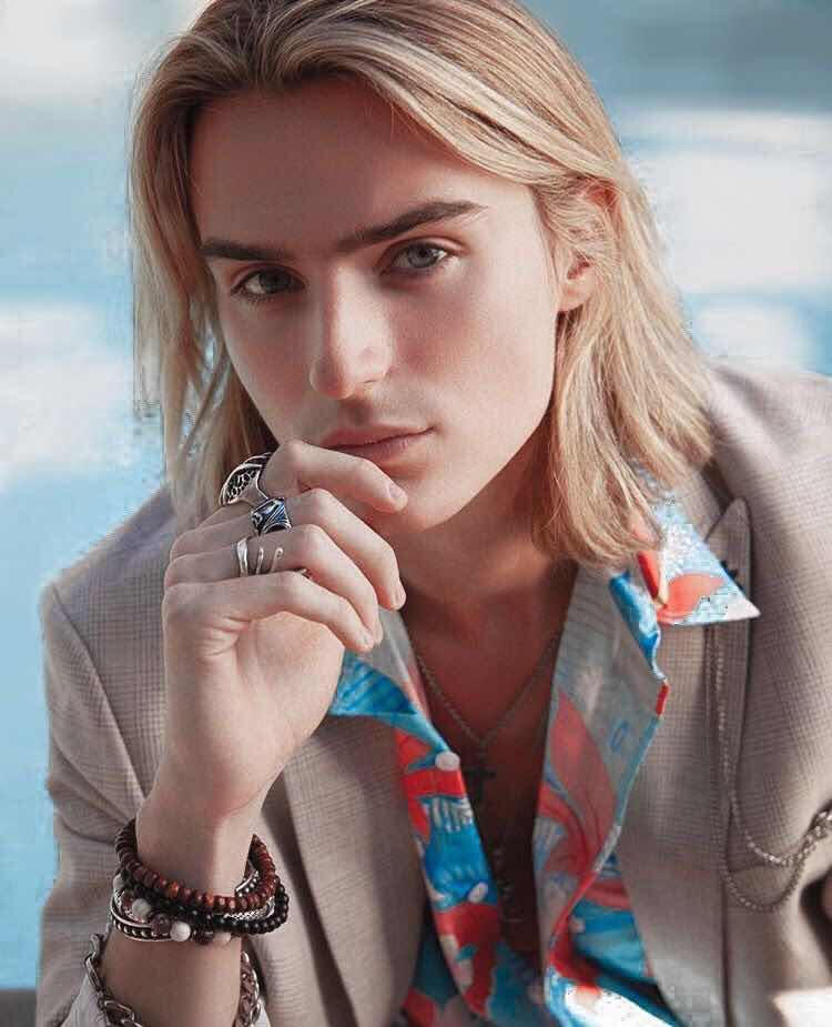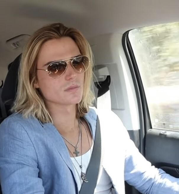 He sticks with his own style, that being a croptop, ripped jeans with fishnets underneath, and his hair either down, in a manbun, or ponytail.