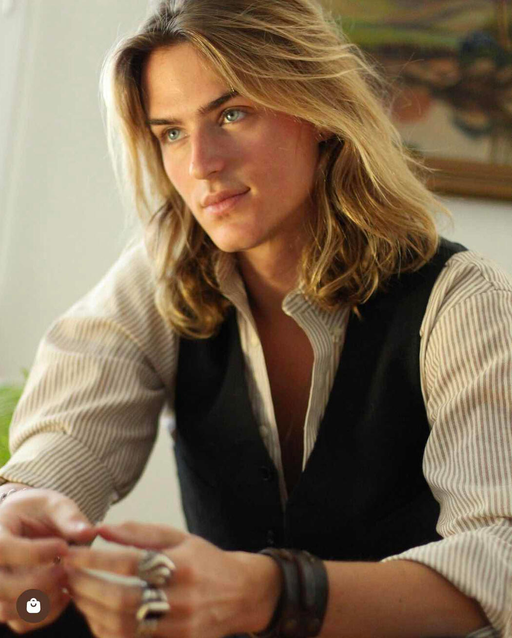 He sticks with his own style, that being a croptop, ripped jeans with fishnets underneath, and his hair either down, in a manbun, or ponytail.